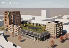 Met het ondertekenen van de intentieovereenkomst tussen Hoogvliet Beheer, Heembouw Wonen en Cazas Wonen is een belangrijke volgende stap gezet in de ontwikkeling van bouwveld B5/6 in de Woerdense wijk Snel & Polanen. Onder de projectnaam WEIDS verrijst hier in de komende jaren een eigentijds en duurzaam wooncomplex met 100 appartementen, een supermarkt met daarboven een tweelaagse parkeergarage en een royale groene daktuin. Het plan combineert wonen, winkelen en parkeren waarbij gemak en ontmoeting op een unieke manier centraal staan. De start bouw staat gepland rond de zomer van 2026.