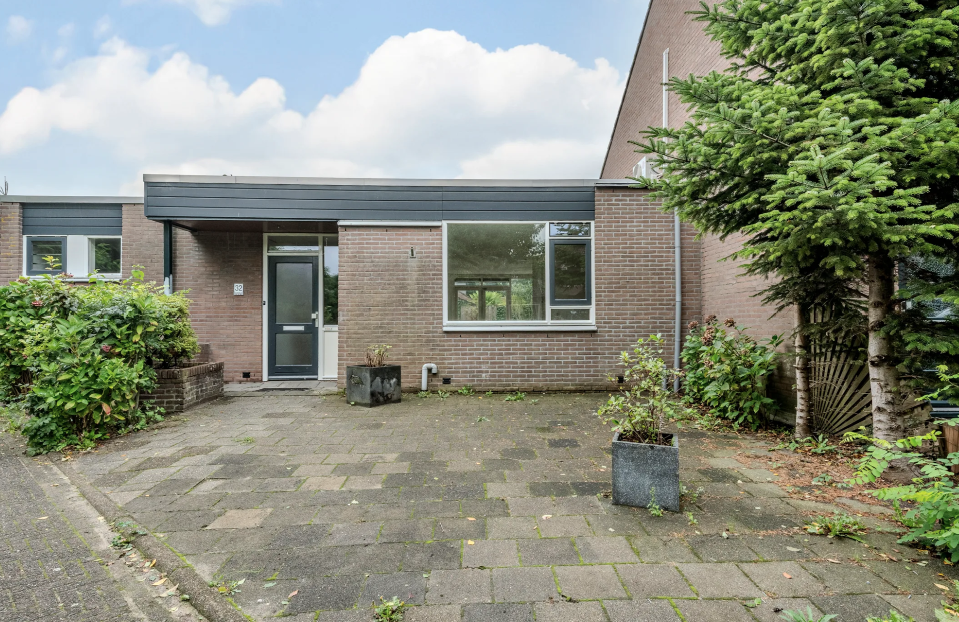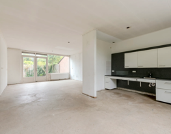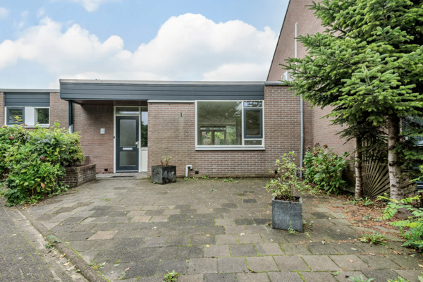 Via de voortuin komen we bij de woning. De woning is geheel gelijkvloers en heeft een praktische en overzichtelijke indeling. Via de entree kom je in een ruime hal die toegang geeft tot de verschillende vertrekken. Aan de voorzijde bevindt zich de keuken met aansluitend ruimte voor een eethoek. De keuken is eenvoudig ingericht en biedt mogelijkheden voor modernisering of het plaatsen van een geheel nieuwe keuken naar eigen smaak. De woonkamer is royaal en heeft grote ramen en openslaande deuren naar het terras, waardoor er veel lichtinval is en een fijn contact met buiten. De indeling biedt ruimte voor zowel een gezellige zithoek als een aparte eethoek.
